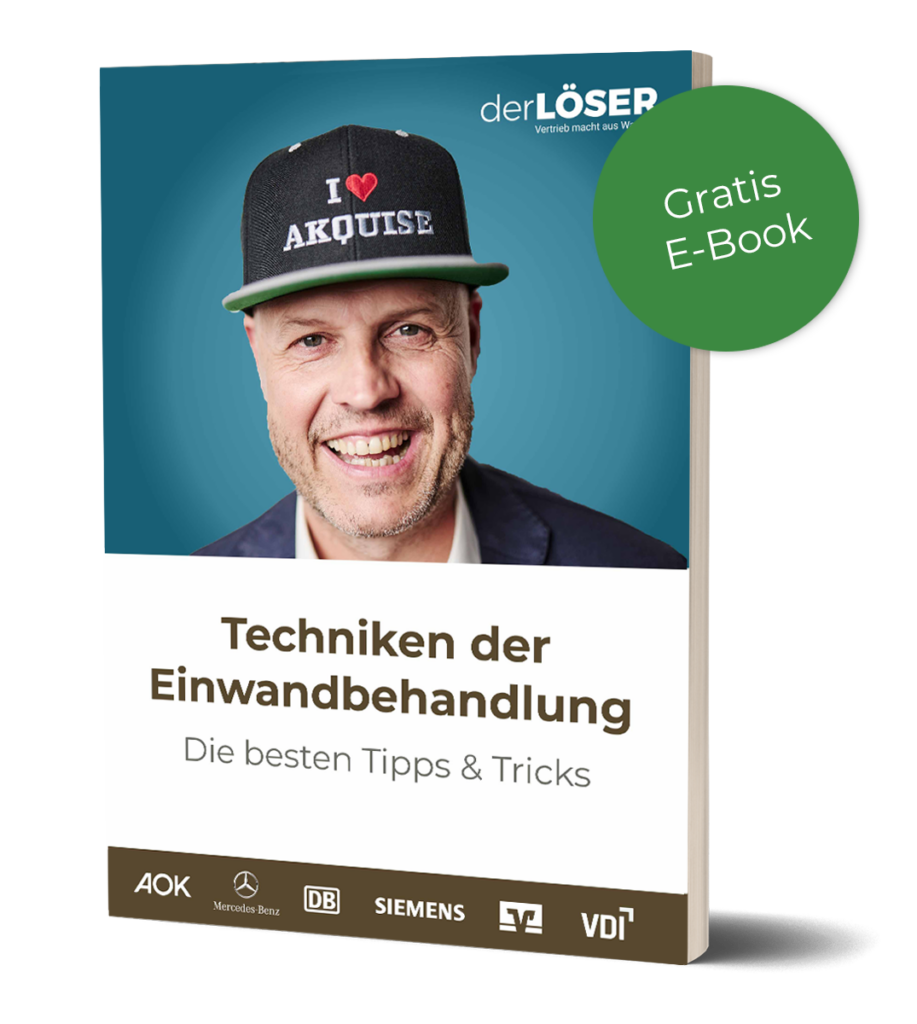 Eine Übersicht über die wichtigsten Grundtechniken der Einwandbehandlung findest du in meinem E-Book zum Thema. Klicke hier oder auf das Bild, melde dich für unseren Newsletter an und lade dir das E-Book herunter.