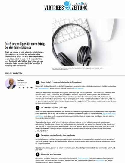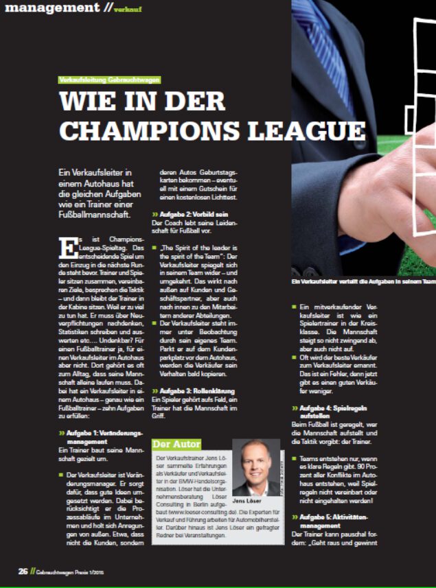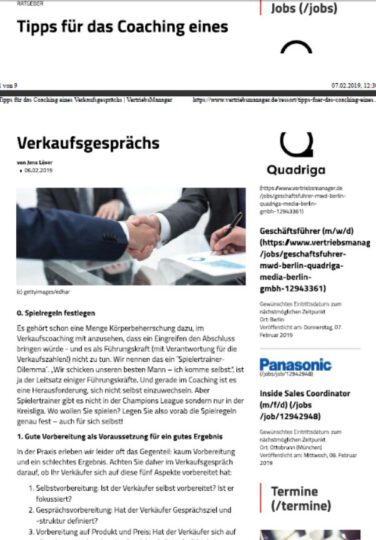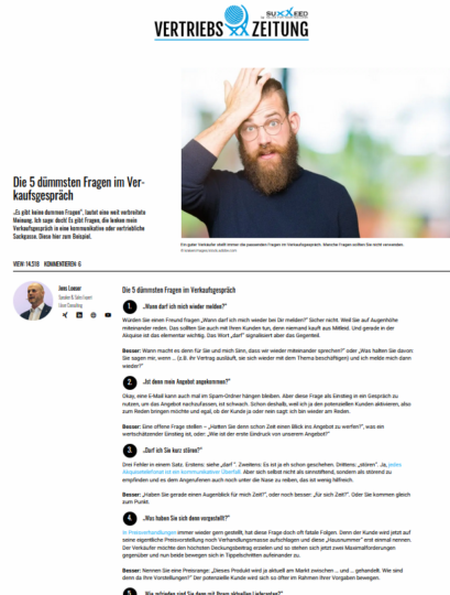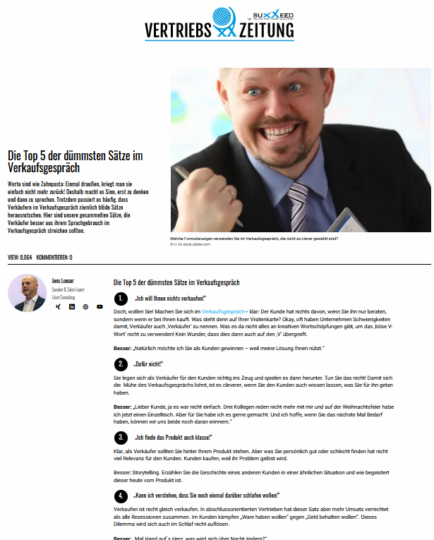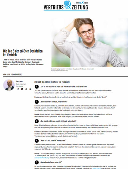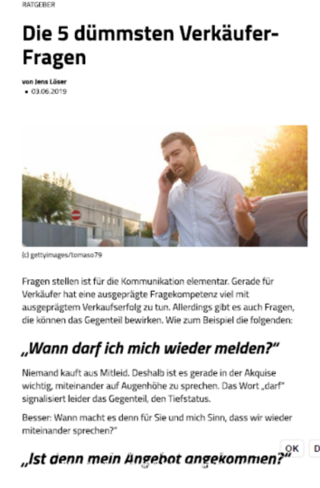 derLÖSER schreibt seit vielen Jahren Presseartikel für Print- und Onlinemedien zu den Erfolgsthemen rund um den Vertrieb. Ausgewählte Artikel haben wir vollständig für euch im LÖSER-Blog verlinkt.